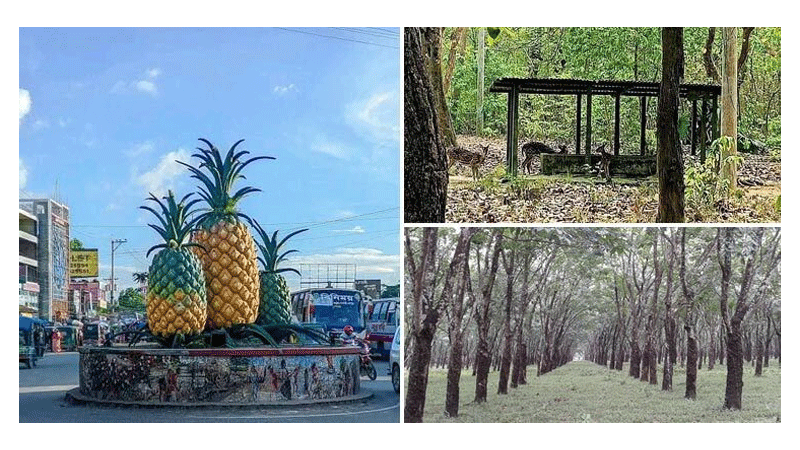 চোখ জুড়ানো সারিবদ্ধ সুউচ্চ রাবার গাছ মনে প্রশান্তির প্রলেপ এঁকে দেবে। সহস্রাধিক গাছ নিয়ে প্রায় ৩ হাজার ১০ একর জায়গার ওপর প্রতিষ্ঠিত পীরগাছা রাবার বাগান। এখান থেকে আপনি রাবার সংগ্রহের ধাপগুলো সম্পর্কে ধারণা পাবেন। সুশীতল ছায়াতলে আবৃৎ পীরগাছা রাবার বাগান মধুপুর বনের সৌন্দর্য বহুগুণে বৃদ্ধি করেছে।