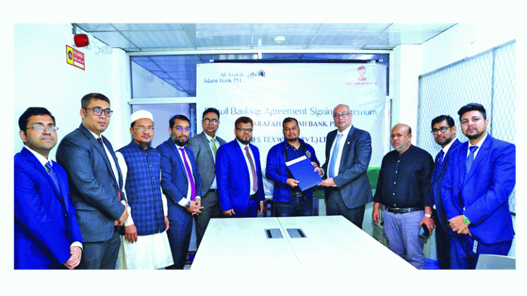 আল-আরাফাহ্ ইসলামী ব্যাংক এবং আইএফএস টেক্সওয়্যার (প্রাইভেট) লিমিটেডের মধ্যে সম্প্রতি পে-রোল ব্যাংকিং চুক্তি স্বারিত হয়েছে।