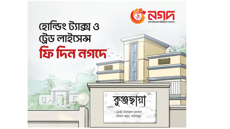 গাইবান্ধা জেলার সব ইউনিয়নের হোল্ডিং ট্যাক্স ও ট্রেড লাইসেন্স ফি এখন থেকে ডিজিটাল পদ্ধতিতে দেওয়া যাবে। আর এই সেবা গ্রাহকরা উপভোগ করতে পারবেন মোবাইল ফাইন্যান্সিয়াল সার্ভিস নগদের মাধ্যমে। সম্প্রতি আনুষ্ঠানিকভাবে সেবাটি উদ্বোধন করা হয়।