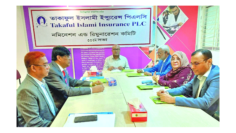 দেশের বেসরকারি বীমা কোম্পানী তাকাফুল ইসলামী ইন্স্যুরেন্স পিএলসি এর নমিনেশন অ্যান্ড রিমুনারেশন কমিটির ৩৩তম সভা ১১ মার্চ রাজধানীর ধানমন্ডিতে অনুষ্ঠিত হয়।