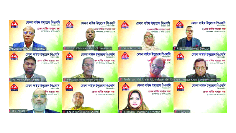 মেঘনা লাইফ ইনস্যুরেন্স পিএলসি এর ২৯তম বার্ষিক সাধারণ সভা ২৮ আগস্ট ভার্চুয়াল প্লাটফর্মে অনুষ্ঠিত হয়। সভায় সাধারণ শেয়ার হোল্ডারদের জন্য ১৫ শতাংশ নগদ লভ্যাংশ সর্বসম্মতিক্রমে অনুমোদিত হয়।