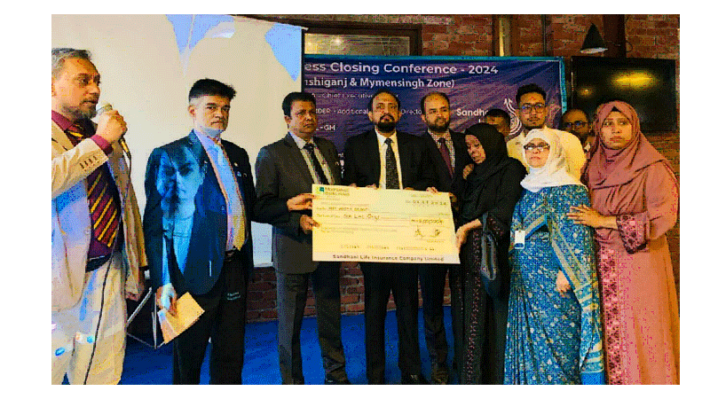 বাংলাদেশ এয়ার ফোর্স মিউজিয়ামস্থ জয়তুন রেষ্টুরেন্টে বেসরকারি জীবন বীমা সন্ধানী লাইফ ইন্স্যুরেন্স কোম্পানি লিমিটেড এর প্রশিক্ষণ ও বর্ষসমাপনী উন্নয়ন সভায় কামরাঙ্গীর চর শাখা অফিসের ইনচার্জ ও এজিএম (উ.) মরহুম আব্দুল মোতালেবের মৃত্যু দাবির ৬ লাখ টাকার চেক তার স্ত্রী আবেদা বেগমের নিকট হস্তান্তর করেন কোম্পানীর মূখ্য নির্বাহী কর্মকর্তা নিমাই কুমার সাহা সম্প্রতি।