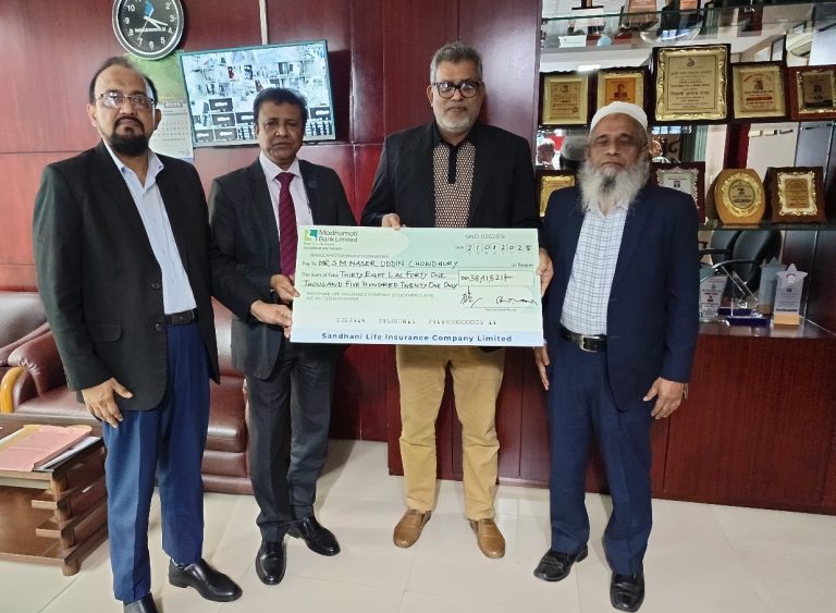 সন্ধানী লাইফের মেয়াদোত্তর বীমা দাবীর চেক হস্তান্তর